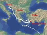 Cruise Mediterranean Sea. (Part I) | First stop from Crete is Bodrum, Turkey, sailed on 13 and 14 April. Good sail, but saw 40kts AWS running away from squall off Kos (est TWS of 48). Big williwaws off big islands. | During the Summer of '05, we sailed from Bodrum through some of the Aegean Turkey, then through Greek Islands in the Aegean to Athens. Then through the Corinth Canal through the Ionean Islands and then to Croatia. We cruised through Croatia, meeting up with old friends. Finally we sailed back to Bodrum where we hauled ARAGORN for the winter. | ||
