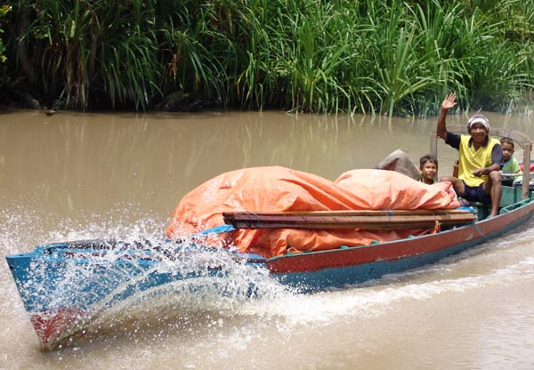 There was some higher-speed transportation: dugout canoes with larger-horsepower outboards. This family had the right transportation for their goods.